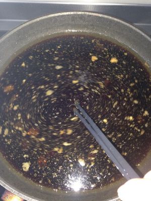 炸过后剩下的油调酱料(醋、冰糖、酱油)还有最先裹淀粉时碗里余下的淀粉一起加上