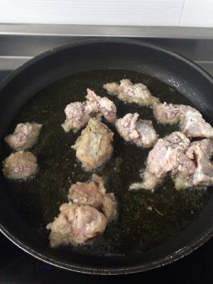 小排下油锅煎黄 。