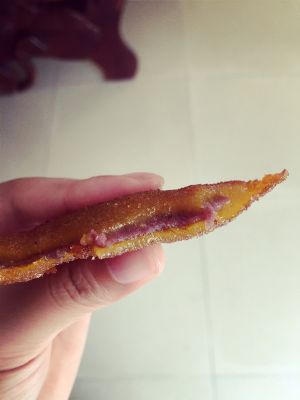 锅小火烧热将南瓜糊倒入锅内,轻轻晃动锅,饼可以移动的时候翻至另一面煎熟即可,我的一两分钟就熟了