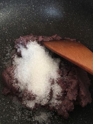 煮熟的赤小豆用搅拌机打成泥,如果太干了就加点开水。