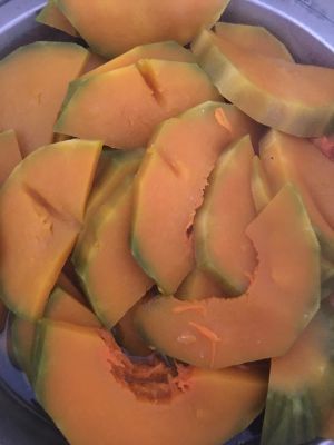 把南瓜洗干净切掉皮,切成小块隔水蒸熟。用勺子把南瓜压成泥,加白糖搅拌均匀(白糖的量可以根据口味自己掌握)。
