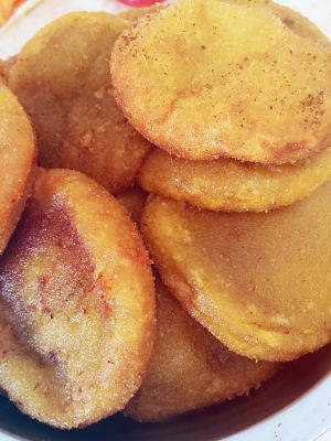 锅里多放些油,油烧热后最小火下炸,等饼浮上来后火可以开稍微大些,等饼两面鼓涨就可以捞起。