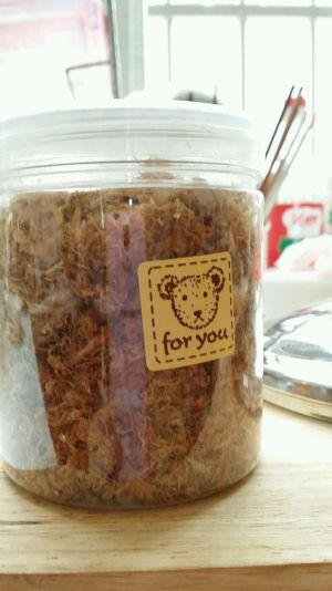 做好的肉松,装在密封的玻璃瓶里,可以保存几个月哦!