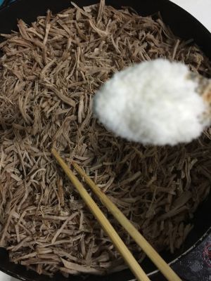 把撕好的瘦肉放在平底锅中,中火慢慢的炒!
