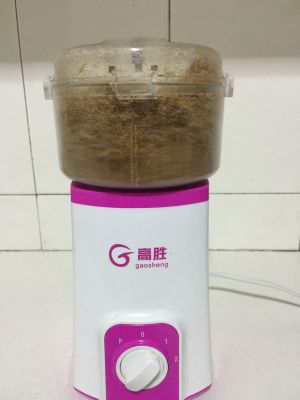 炒干水分后的猪肉放研磨机打碎。 大功告成啦