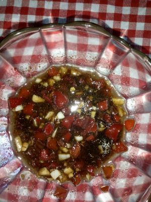 把生抽,剁椒,椒盐,大蒜子,色拉油,麻油搅拌混合
