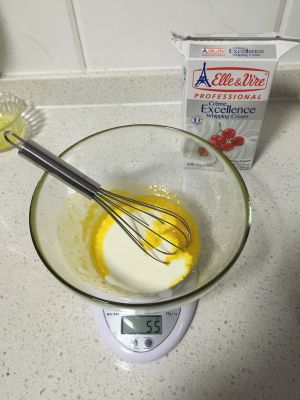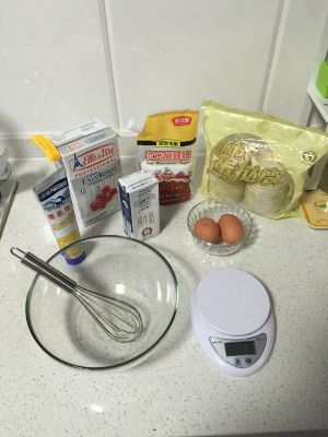 准备材料。偶用的是光明牛奶和雀巢淡奶油,因为我做的是5个,所以我用的是上面的料除了3左右哦~