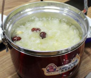 然后转小火让它慢慢的炖半个小时,焖上一会就可以吃了,夏天吃这个美容养颜的
