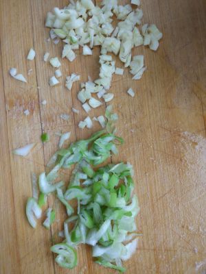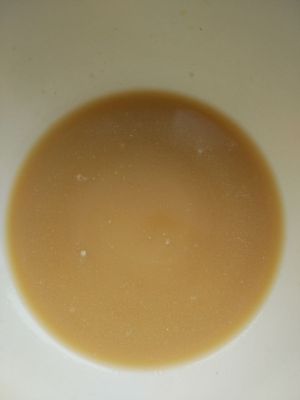 调一个料汁:1勺老抽,2勺生抽,2勺醋,1小勺盐,1小勺鸡精,1勺淀粉,加少量水搅拌。