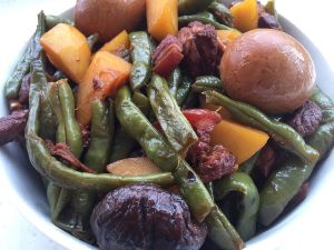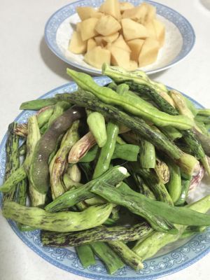 肉煮至快熟时加2茶勺盐,等到肉完全煮熟后,将锅里的调料挑拣出来,继续加入豆角,土豆煮熟