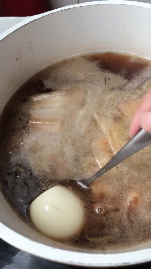 肉倒进锅 再倒适量水(淹没肉) 加1汤匙料酒 2汤匙醋