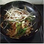 热锅下油热至8分熟,放入腌制好的牛肉,爆炒至8分熟,上碟备用。锅不用洗,再加一点点油,随即加入芽菜炒至芽菜熟透后,再加入河粉继续翻炒,翻炒过程中手法必须要快,这样做是防止河粉粘锅。