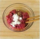 牛里脊肉逆丝切成片,加少许生抽、盐、料酒、干淀粉、植物油拌匀腌制15分钟;