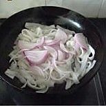 加入洋葱丝、调入蚝油、生抽、胡椒粉炒匀;