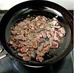 空锅烧辣起烟,倒入冷油烧制六七十度倒入腌好的牛肉