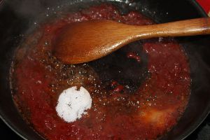 倒入番茄酱和少许清水,煮沸后小火收汁;