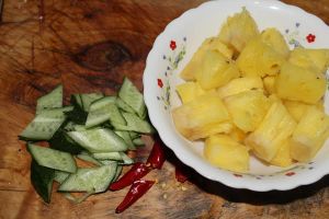 焯好菠萝备用,准备黄瓜片和干辣椒(最好用彩椒,颜色漂亮)
