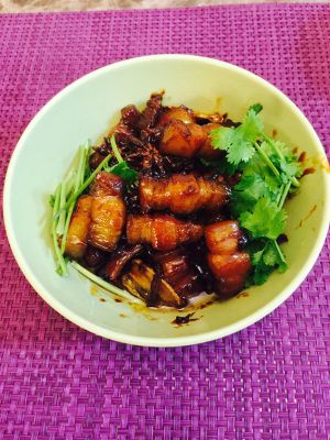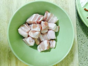 先把肉用温水冲洗干净(因为女儿喜欢吃排骨,老公喜欢吃五花肉,所以每次我都是2种肉一起烧的,和五花肉一起烧的排骨不会材,会比单独烧的好吃)