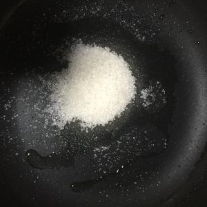 锅中加入白砂糖制糖稀。各位可以视锅具是否加油