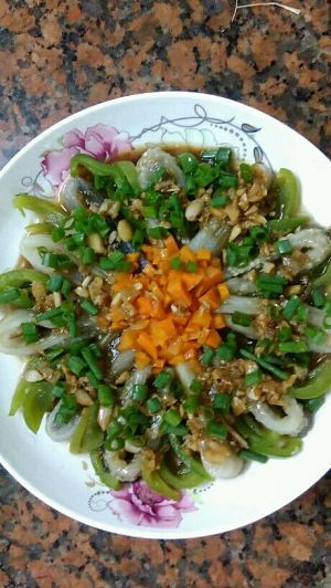 趁热把调好的酱汁倒在上面,最后撒上葱花