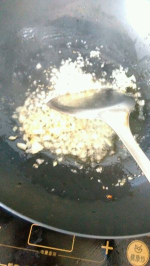 倒入适量食用油,热锅后倒入切好的蒜头葱花末翻炒