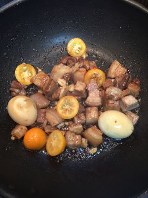 最后就是这样子的啦,肉肥而不腻,在烧制过程用也不用担心油溅的到处都是,金桔的清香也能融合在肉中,一点也不会腻!