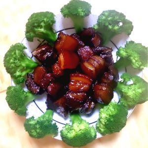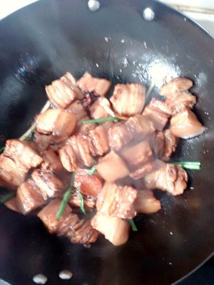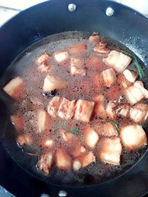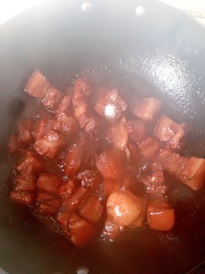 油5成热,加入一块八角进去炒出香味,把切好的肉放进去翻炒变色后加入适量水(淹没过肉)一勺生抽,一勺老抽,适量冰糖 水开后中火炒至汤汁变浓稠,改成大火收汁 红烧肉大概需要30~40分钟