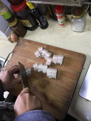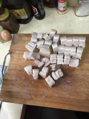 把带皮的五花肉洗净,切成方块,沥水备用,大小看个人喜好