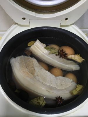 五花肉洗净放入锅中,依次加入八角生姜草果桂皮香叶,喜欢吃鸡蛋可以加入鸡蛋一起煮开,肉汤保留,留到后面煮红烧肉