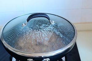 加入适量的水,盖上锅盖焖15分钟。最后倒入土豆丁再煮15分钟。