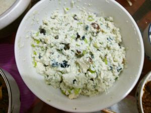 皮蛋和豆腐放在一起,葱切成葱花放入,