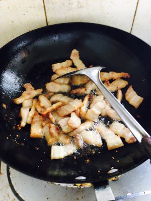 煸炒至焦黄色,这是肥肉中的大部分油脂已经被煸出。