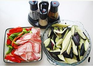 原料:茄子500克、辣椒200克、五花肉200克、蒜末2勺、水淀粉3勺、黄酱半杯、老抽半勺、糖1勺、胡椒粉1小勺。