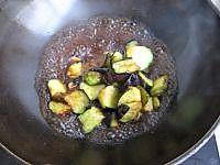 放入酸甜辣椒酱、生抽、水,再放入处理过的茄子。