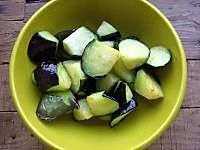 将切好的茄孑放入微波炉高火加热五分钟,取出滤水。