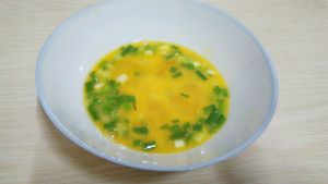 鸡蛋加入葱花沫和适量盐搅拌均匀备用。