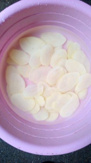 土豆切片,放水里泡一下,洗去淀粉。
