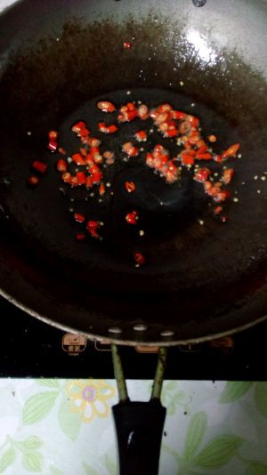 倒入油,炸一下尖椒。