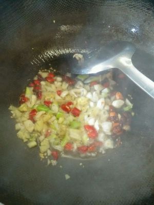 把葱姜蒜辣椒干丢进去