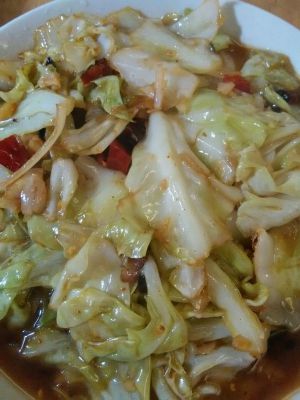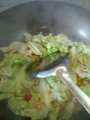 再倒入已经调好的调料翻炒,包菜熟透即可。