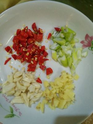 再准备姜末,蒜末,葱末和干辣椒。