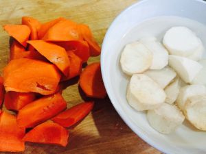 胡萝卜和长山药洗净备用,长山药泡凉水里