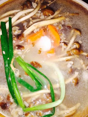出锅前五分钟加入一个浓汤宝,猪骨口味的。加入少量香油,香菜就做好了,美味又简单哦!也可以用电饭锅炖,调到粥汤档,步骤一样,四十分钟后享受美味吧!
