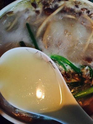 锅开以后放入盐,尽量不要放太多调味料。。那样只会破坏汤的味道,我会加一点醋