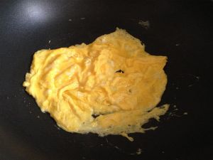翻炒几下,鸡蛋液凝固即可盛出备用;