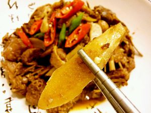子姜一大块(3两左右),洗净去芽衣,切成薄片。