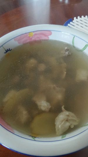 起锅的时候放1勺半鸡精调味,切少许葱花,这碗汤耗时1个半小时,小火慢炖,汤味道十分鲜美,肉软烂适中,玉米香甜,吃起来很爽口。(照片比较模糊,顾着喝汤了)