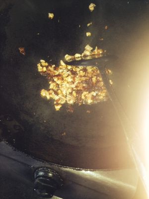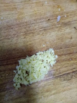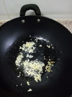 锅内放少许油,放入一半的蒜末,放糖《喜欢吃甜的多放,按个人口味加量》,酱油,盐