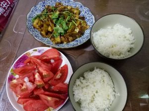 茄子一个洗净不去皮切块立方体3平方厘米,西红柿洗净切块,不要太大了