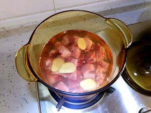 盖上盖子,大火烧开,小火慢炖,烧至排骨熟烂即可大概1小时左右